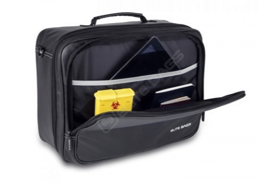 The elegant Elite CARE medical briefcase and shoulder bag is a high capacity case, designed specifically for medical and health professionals who need to carry essential clinical materials during home visits. Cut from tough yet lightweight and waterproof materials, this bag, weighing only 1.4Kg, is easy to clean, practical and stylish. Divided into two main sections, the front pocket is ideal for storing documents, tablets and identification documents, while the main compartment contains mesh fronted pockets and removable pouches, ideal for organizing a myriad of clinical necessities. This comfortable and practical briefcase is the perfect solution for busy medical professionals conducting home visits.